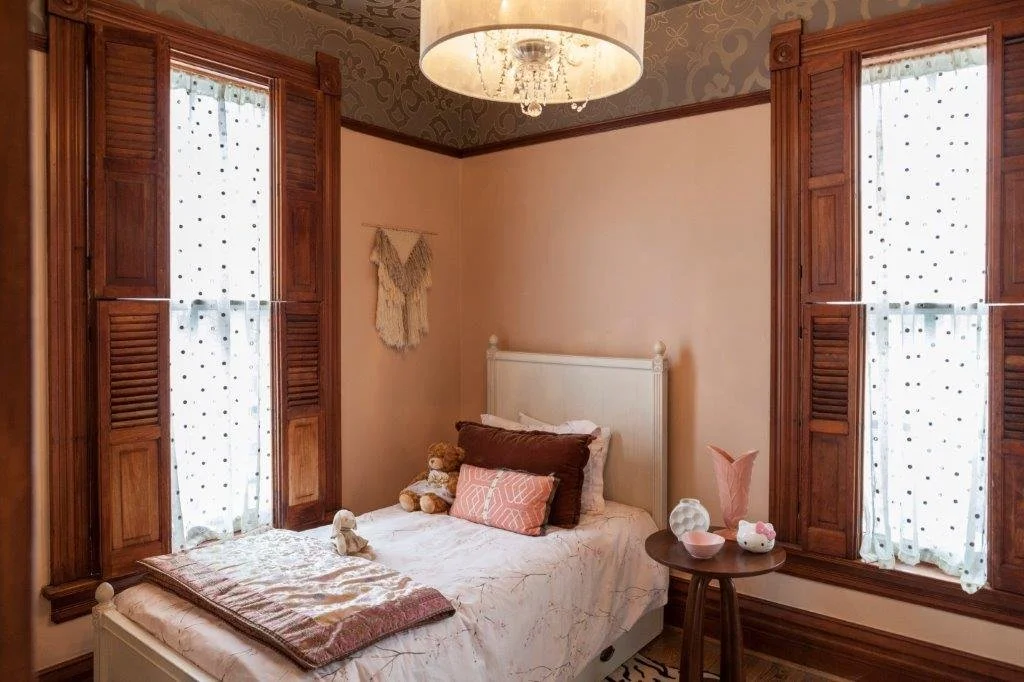 Taking cues from the Victorians’ eclectic spirit and the acorn & flower motifs of this landmark home’s woodwork, GT&H added to the original work of PROjECT Interiors, adding vibrant jewel and deep earth tones, natural objects and global accents, mixing it up with family artwork and fresh kid spaces.